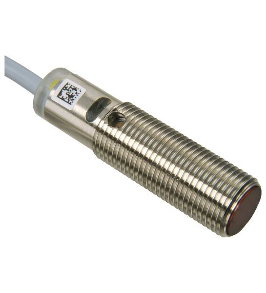 Reflexionslichttaster energetisch, Gewindebauform M12, Metallgehäuse, Lichtaustritt frontal, Tastweite 300 mm, Rotlicht, Hell-/Dunkelschaltung, 1 NPN-Ausgang, Festkabel, Robustes M12 Gewindegehäuse, Geringer Platzbedarf, Hell-/dunkelschaltend verdrahtungsprogrammierbar, Schutzart IP67