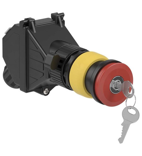 NOT-AUS-Pilztaster 39 mm, rot, Schlüsselentriegelung - 2x Öffner, Ex-de- und Ex-tb-zertifiziert, Komplett bescheinigtes explosionsgeschütztes Betriebsmittel, Gehäuse aus Polyamid, zum Einbau in Schalttafel, Montage in Zone 1, Zone 2, Zone 21 und Zone 22, Kabelverschraubung M20 integriert in Schutzkappe, Schutzart IP66, Funktion: Pilztaster, Gehäuse: Polyamid (PA), Kennzeichnung: [exsign] II 2 GD