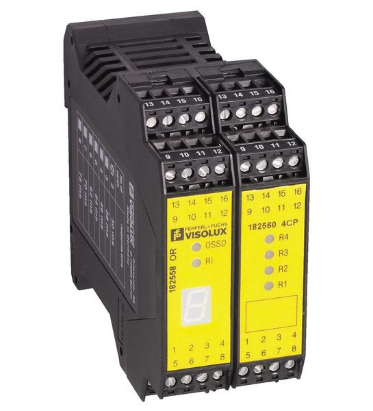 Auswertegerät für Sicherheits-Einweg-Lichtschranken SLA12 und SLA29 und für 2-kanalige Sicherheitseinrichtungen (Not-Aus), 4 Sensorkanäle, Selbstüberwachend (Typ 4 nach IEC/EN 61496-1), Wählbare Betriebsarten mittels DIP-Schalter, Anlauf-/Wiederanlaufsperre, Relaismonitor, Funktionsreserve-Anzeige, Gut sichtbare Funktionsanzeige, Sicherheits-Integritätslevel (SIL): SIL 3, Performance Level (PL): PL e, Kategorie: Kat. 4, Betriebsspannung: 24 V DC, ± 20 %