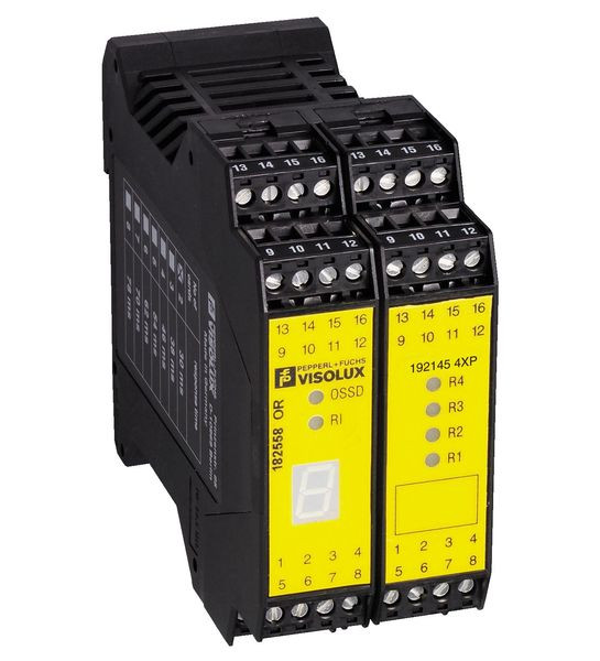 Auswertegerät für Sicherheits-Einweg-Lichtschranken SLA5(S) und SLA40; für Sicherheits-Lichtgitter SLP, für Sicherheits-Lichtvorhänge SLC; für Schaltmatten und Not-Aus-Taster der Kategorie 2 und 4, 4 Sensorkanäle, Selbstüberwachend (Typ 4 nach IEC/EN 61496-1), Wählbare Betriebsarten mittels DIP-Schalter, Anlauf-/Wiederanlaufsperre, Relaismonitor, Funktionsreserve-Anzeige, Gut sichtbare Funktionsanzeige, Sicherheits-Integritätslevel (SIL): SIL 3, Performance Level (PL): PL e, Kategorie: Kat. 4