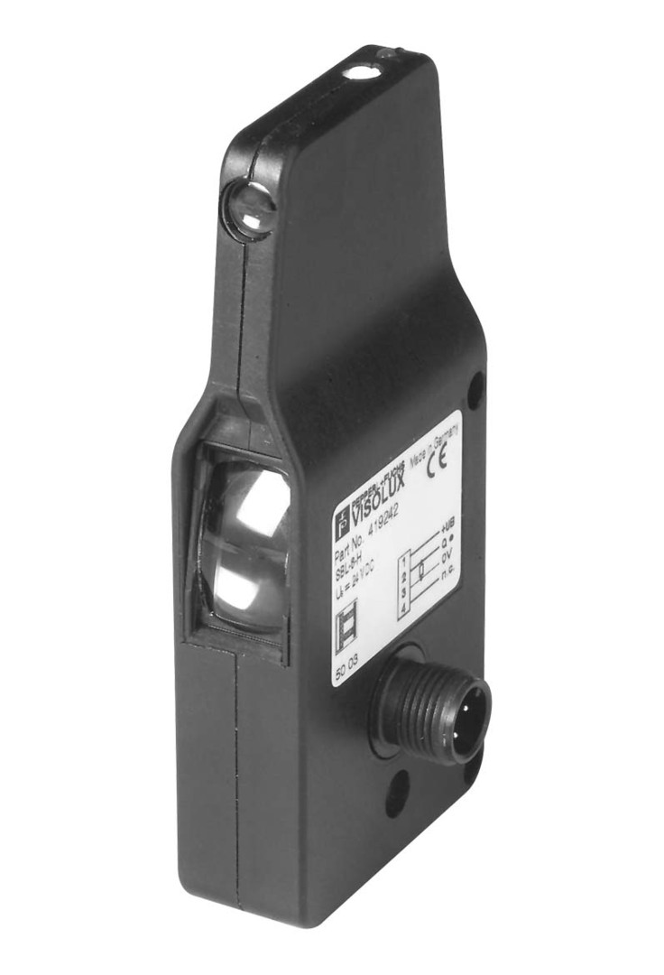 Staubahntaster, Reflexionslichttaster mit Hintergrundausblendung, Tastweite 900 mm einstellbar, Infrarotlicht, Hellschaltung, 1 PNP-Ausgang, Stecker M12, Reflexions-Lichttaster mit Hintergrundausblendung für Staurollenförderer, Für die Montage zwischen den Rollen eines Rollenförderers, Sehr kleine Schwarz-Weiß-Differenz, Stufenlose elektrische Tastweitenverstellung