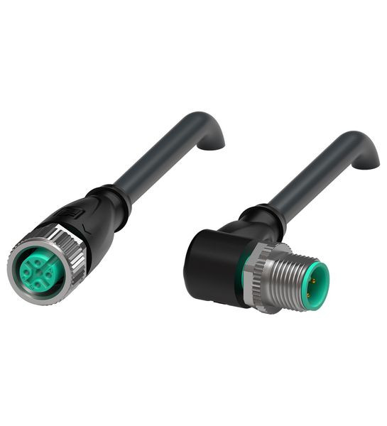 Verbindungskabel M12-Buchse gerade auf M12-Stecker gewinkelt A-kodiert, 4-polig, PUR-Kabel schwarz, geschirmt, UL-zugelassen, schleppkettentauglich, Outdoor