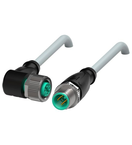Verbindungskabel M12-Buchse gewinkelt auf M12-Stecker gerade A-kodiert, 4-polig, PUR-Kabel grau