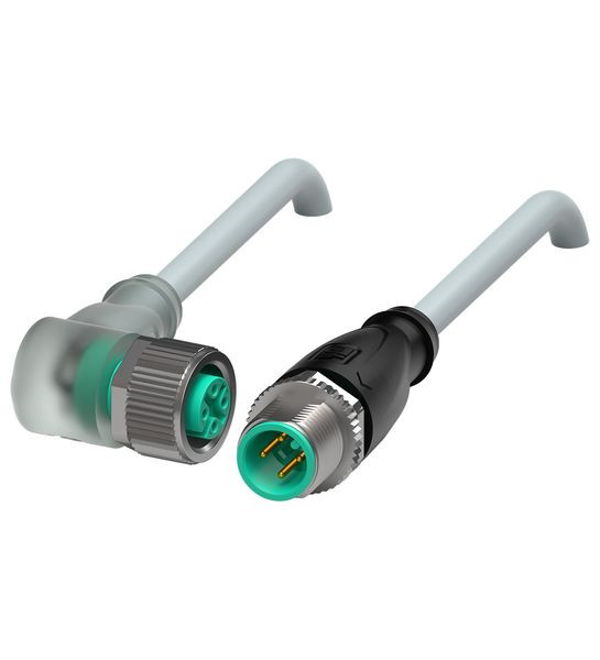Verbindungskabel M12-Buchse gewinkelt A-kodiert LED 4-polig auf M12-Stecker gerade A-kodiert 4-polig, PUR-Kabel grau