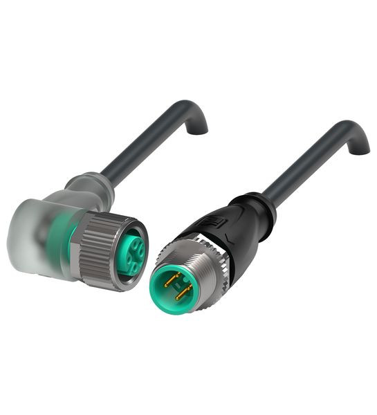 Verbindungskabel M12-Buchse gewinkelt A-kodiert LED 4-polig auf M12-Stecker gerade A-kodiert 4-polig, PUR-Kabel schwarz, UL-zugelassen, schleppkettentauglich, torsionsgeeignet