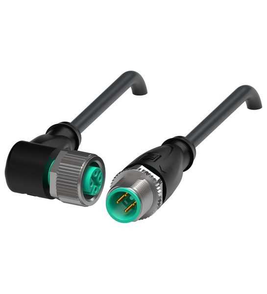 Verbindungskabel M12-Buchse gewinkelt auf M12-Stecker gerade A-kodiert, 4-polig, PUR-Kabel schweißspritzerbeständig schwarz, UL-zugelassen, schleppkettentauglich, torsionsgeeignet
