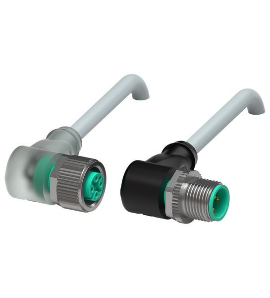 Verbindungskabel M12-Buchse gewinkelt A-kodiert LED 3-polig auf M12-Stecker gewinkelt A-kodiert 3-polig, PVC-Kabel grau
