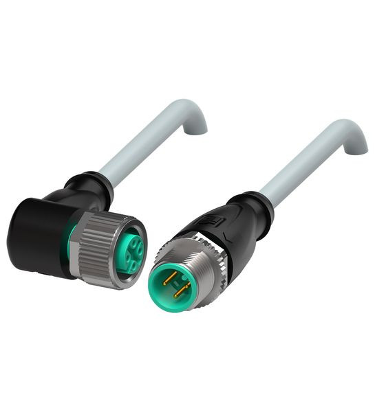 Verbindungskabel M12-Buchse gewinkelt auf M12-Stecker gerade A-kodiert, 3-polig, PVC-Kabel grau