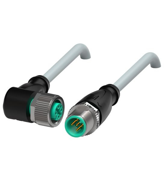Verbindungskabel M12-Buchse gewinkelt auf M12-Stecker gerade A-kodiert, 5-polig, PUR-Kabel grau