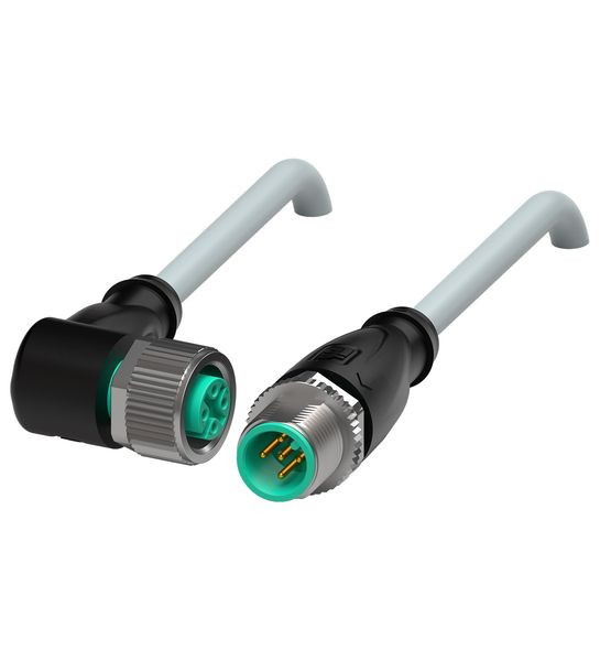 Verbindungskabel M12-Buchse gewinkelt auf M12-Stecker gerade A-kodiert, 5-polig, PUR-Kabel grau, geschirmt