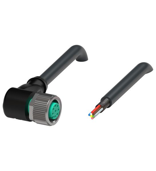 Kabeldose M12 gewinkelt A-kodiert, 8-polig, PUR-Kabel schwarz, geschirmt, UL-zugelassen, schleppkettentauglich