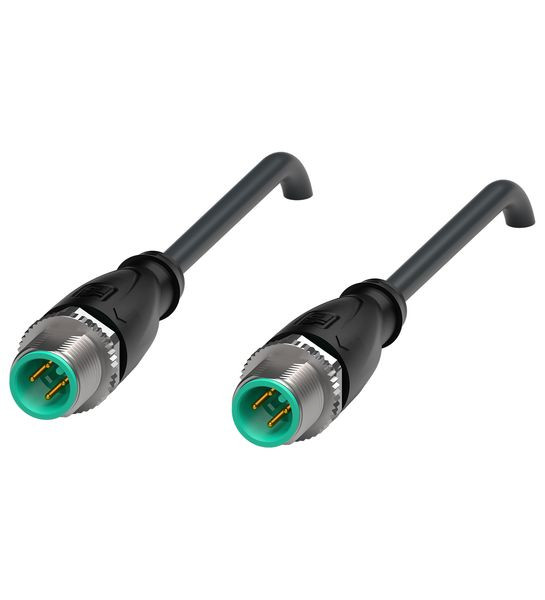 Adapterkabel M12-Stecker gerade auf M12-Stecker gerade A-kodiert, 4-polig gekreuzt, PUR-Kabel schwarz, UL-zugelassen, schleppkettentauglich, torsionsgeeignet