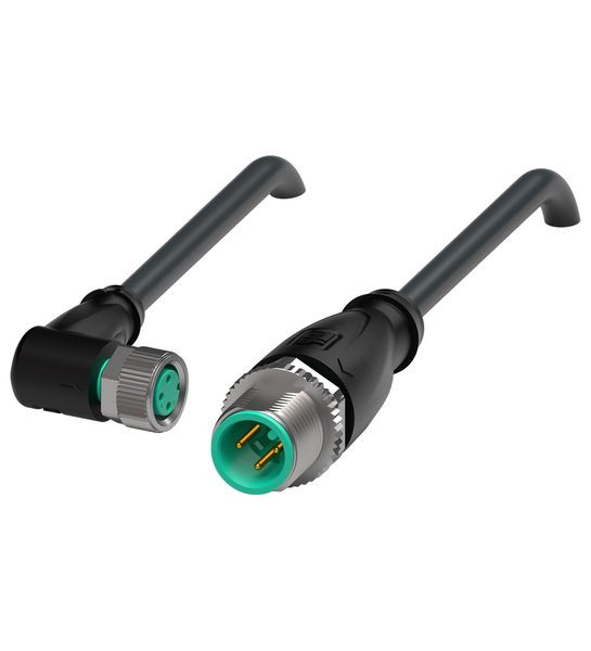 Verbindungskabel M8-Buchse gewinkelt auf M12-Stecker gerade A-kodiert, 3-polig, PUR-Kabel schwarz, UL-zugelassen, schleppkettentauglich, torsionsgeeignet