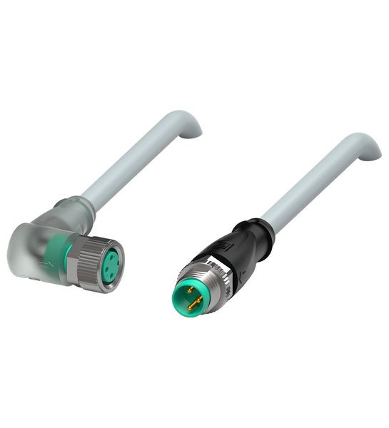 Verbindungskabel M8-Buchse gewinkelt A-kodiert LED 3-polig auf M8-Stecker gerade A-kodiert 3-polig, PUR-Kabel grau