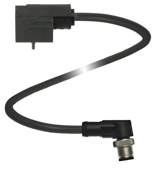 Ventilstecker Form B (Ind), Z-Diode LED 2-polig+PE auf M12-Stecker gewinkelt A-kodiert 3-polig, PVC-Kabel schwarz