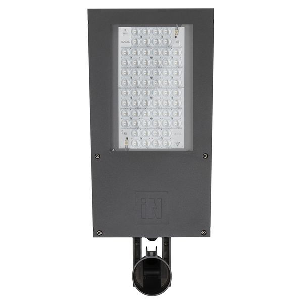 LED Straßenleuchten, in zwei Ausführungen: Mit Polymerpulverlack körnig grau lackiertes Aluminiumdruckgussgehäuse nach vorheriger chemischer Oberflächenbehandlung. Verschlussring aus lackiertem Aluminiumdruckguss mit Polyesterpulverbeschichtung, nach vorhergehender chemischer Umwandlung, der unverlierbar durch ein Gelenk mit dem Gehäuse verbunden ist. Befestigungsteil für Masten aus Aluminiumdruckguss, körnig grau lackiert, geeignet für Masten D= 60 mm oder 76 mm. Diffusor aus extraklarem temperiertem Sicherheits-Flachglas. Optik aus Technopolymer-Linsen mit erhöhter Lichtdurchlässigkeit. Je nach Modell sind folgende Optiken verfügbar: SR/T1 für enge Straßen und mit einem Verhältnis B/H (Straßenbreite / Masthöhe) bis zu 0,75 SR/T2 für zweispurige Straßen mit einem Verhältnis B/H von 1 SR/T3 für breite Straßen mit einem Verhältnis B/H von 1,25 SR/T4 für breite Straßen mit einem Verhältnis von B/H gleich 1,5. Dichtung aus beständigem Silikon mit erhöhter Rückfederungsfähigkeit. Kabelverschraubung M20x1.5 für Kabel mit D= 10-14 mm. Linientrennstecker, der beim Öffnen des Rings automatisch die Stromzufuhr unterbricht. Leistungsstarkes elektronisches Vorschaltgerät. Lieferbar sind Versionen mit ON-OFF-Driver und dimmbar DALI. Entspricht der Norm UNI 10819 sowie regionalen Gesetzen bezüglich Lichtverschmutzung. Außenschrauben aus Edelstahl. Komplett mit zusätzlicher Schutzeinrichtung gegen Netzüberspannungen bis 10 kV (DM). SECURE LIGHT DISTRIBUTION-System, das eine einheitliche Verteilung des Lichts auch bei Mängeln einer LED garantiert. Lieferbar sind Ausführungen mit automatischer Leistungsreduzierung. Alle Versionen sind auf Anfrage mit LED mit 3000-K verfügbar. Weitere Farbtemperaturen und Farbtöne auf Anfrage.