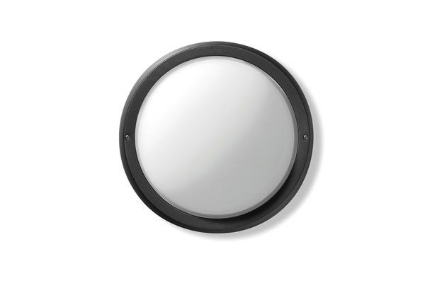 Wand- und Deckenleuchten für Innen- und Außenbereiche, in zwei Größen, bestehend aus: Gehäuse, Ring, Gitter oder Grill aus Technopolymer. Diffusor aus gepresstem Glas, innen mattiert. Parabolreflektor aus Aluminium bei Glühlampenausführungen. Kabelhalterung aus Aluminium bei Leuchtstofflampenausführungen. Äußere Schrauben aus Edelstahl. DETEK Ausführung mit angebautem Bewegungsmelder im Technopolymergehäuse. Interventionsschwelle von 5 lux bei Tageslicht. Einstellung der Ausschaltzeit zwischen 6 Sekunden und 20 Minuten. Der Sensor muss immer nach unten zeigen. Bewegungssensor für ohmsche und induktive Last geeignet. Alle Versionen sind auf Anfrage mit Polycarbonatdiffuser schlagfest nach IK10. Diebstahlsichere Schrauben als Zubehör lieferbar. PC 960 Grad Ausführungen auf Anfrage. Erhältlich in Oval.