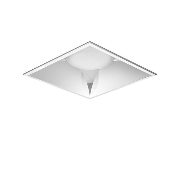 Quadratisches modulares LED-Einbau-Downlight für den Innenbereich, bestehend aus: LED-Modul, Aluminium-Druckguss-Kühlkörper, Reflektor mit integriertem Blendring, Diffusor und externer Versorgungseinheit. Alle Komponenten sind nachträglich und werkzeuglos austauschbar. Integrierter Diffusor mit optimaler Streuung für eine sehr hohe Gleichmäßigkeit. Hochwertiges Thermomanagement durch Aluminium-Druckguss-Kühlkörper mit FAST „Flexible Air Stream Technology“. Inkl. elektronischem Konverter. DALI dimmbar. Geeignet für Deckenplattenstärken von 1-25 mm. Werkzeugfreie, installationsfreundliche Montage. Wieland-Steckverbinder. Zusatzausstattung: Hochglänzender modularer Radialraster-Reflektor mit integriertem Blendrahmen aus metallisiertem ABS-Spritzguss mit lichtdichter Anbindung an LED-Modul. Reflektor mit integriertem Blendring aus ABS-Spritzguss in weiß mit lichtdichter Anbindung an LED-Modul und mattierter Kunststoffscheibe (IP54).