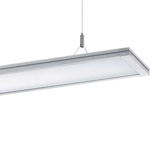 Pendelleuchte SL720+ mit Hochleistungs-LED. Leuchtenleistung 69W. Normgerecht entblendete Arbeitsplatzleuchte für flexible und individuelle Anordnung. Besonders innovativ und effizient durch extra flaches Design (20mm). Nutzung für die innovative und komfortable Bürobeleuchtung. Leuchtengehäuse aus Aluminium-Strangpressprofil. Light-Engine mittels Einschubmechanik auswechselbar. Mikroprismenabdeckung für effiziente Lichtstreuung, Blendungsminimierung und eine hohe Gleichmäßigkeit. Integrierter hochtransmittierender Lichtleiter. Direkt- indirekt strahlend. Homogene Leuchtdichteverteilung über die gesamte Lichtaustrittsfläche (LED Sidelight-Technologie). Blendfreie Mikroprismenabdeckung sorgt für eine attraktive Raumatmosphäre. Hohe Lichtqualität unterstützt anspruchsvolle Sehaufgaben. Indirektanteil erzeugt visuelle Öffnung des Raumes durch großzügige Deckenaufhellung mit kontinuierlichem Leuchtdichteverlauf. BAP-geeignet nach DIN EN 12464-1.