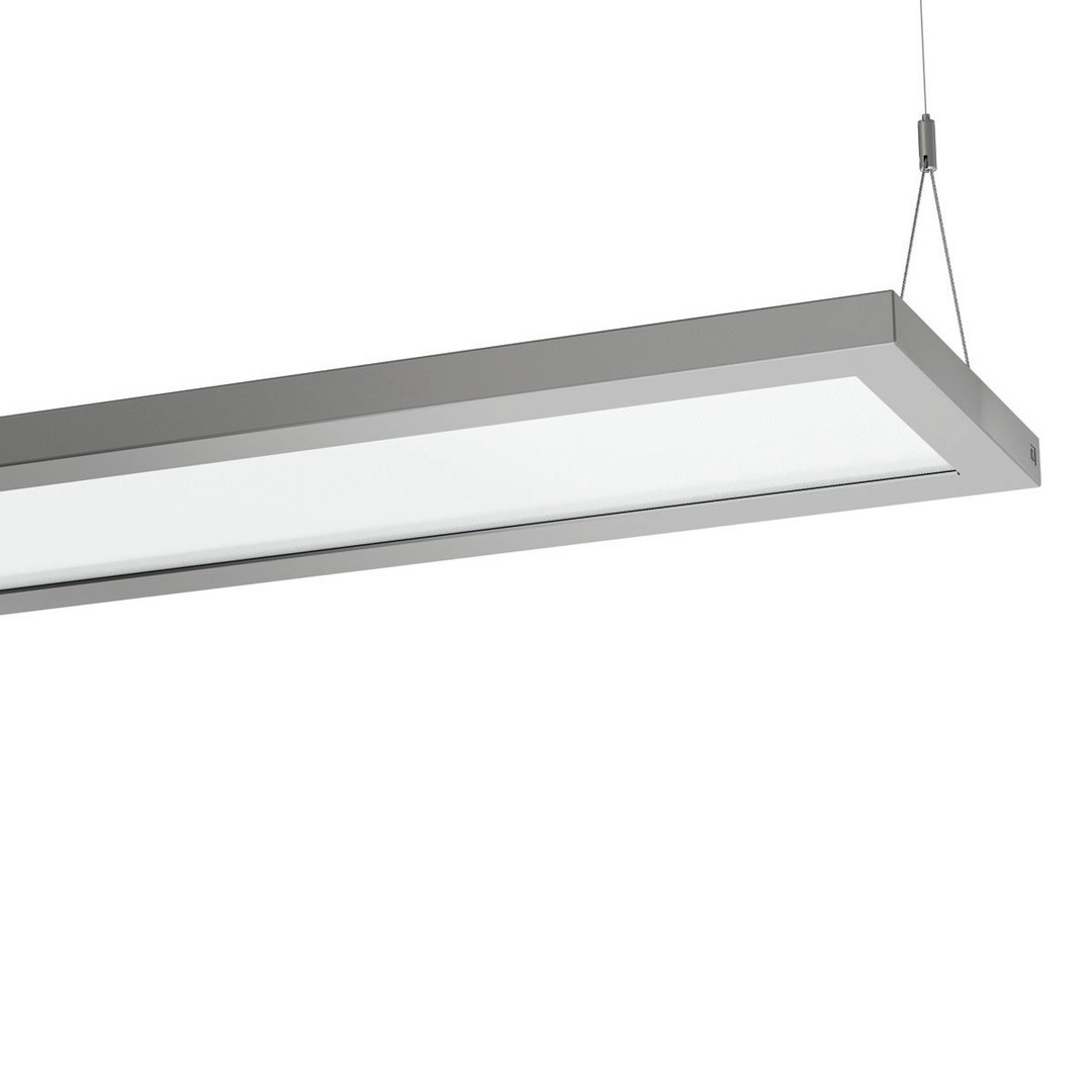 Pendelleuchte SL629 mit Hochleistungs-LED. Leuchtenleistung 54W. Universell einsetzbare Langfeldleuchte für den Office-Bereich. Klare Formsprache und zurückhaltende Optik unterstützen eine harmonische Einbindung in die vorhandene Architektur. Besondere Eignung für großflächige Büro- und Bildungseinrichtungen durch einfache Wartung, große technische Variabilität und ausgewogenes Preis-Leistungs-Verhältnis. Leuchtengehäuse aus Stahlblech. Light-Engine mittels Einschubmechanik auswechselbar. Prismatische Lichtoptik für effiziente Lichtstreuung, Blendungsminimierung und eine hohe Gleichmäßigkeit. Integrierter hochtransmittierender Lichtleiter. Direkt / indirekt strahlend. Homogene Leuchtdichteverteilung über die gesamte Lichtaustrittsfläche (LED Sidelight-Technologie). BAP-geeignet nach DIN EN 12464-1.