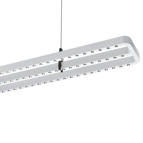 Pendelleuchte Small Line mit Hochleistungs-LED. Leuchtenleistung 69W. Innovative Pendelleuchte in ultra-linearem Design. Einzigartige 3-Stegoptik ermöglicht Durchsicht. Hocheffiziente Einzelentblendung für maximale Lichtqualität. High-End-Beleuchtungslösung im Office-Bereich. Einzelstränge aus Aluminium-Strangpressprofil. Kopfstückverbinder aus Aluminiumdruckguss. Gezielte Lichtlenkung durch Einzel-LED-Hochglanzreflektoreinsatz für effiziente Entblendung. Effizienz-Plus durch minimale Verschattung des Indirektanteils dank 100%iger Transmission in den Stegzwischenräumen. Direkt- indirekt strahlend. Blendfreie Reflektortechnik erzeugt fokussierende Beleuchtungszonen. Hohe Lichtqualität unterstützt anspruchsvolle Sehaufgaben. Indirektanteil erzeugt visuelle Öffnung des Raumes durch großzügige Deckenaufhellung mit kontinuierlichem Leuchtdichteverlauf. BAP-geeignet nach DIN EN 12464-1.