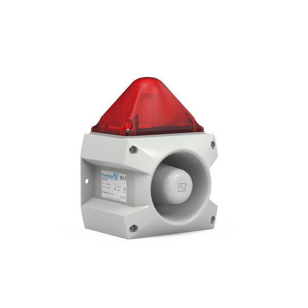 "Kompakter LED-Schallgeber in rot mit roter Haube