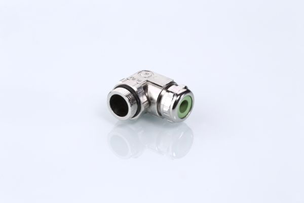 Kabelverschraubungswinkel UNI Dicht, mit Pg-Gewinde, aus Zinkdruckguss, Druckschraube Messing vernickelt, für die sichere Kabelführung um 90°, Dichteinsätze aus TPE, TPE-V und Silikon HT, um 360° positionierbar durch Gegenmutter, O-Ring aus HNBR, Zugentlastung bis Klasse A, EN 62444 Schutzart IP 68 bis 10 bar, Anschlussgewinde Pg16