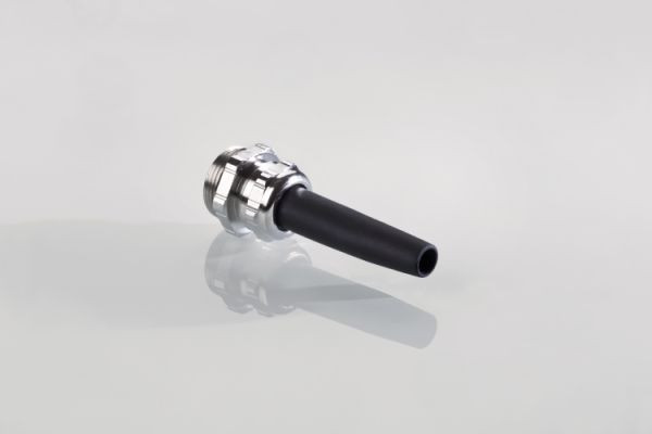 Kabelverschraubung UNI Biegeschutz Dicht, aus vernickeltem Messing, mit angeformter Biegeschutztülle, mit elastischen Dichteinsätzen für großflächige und schonende Kabelabdichtung, O-Ring aus HNBR, sehr gute mechanische und thermische Eigenschaften, hohe Korrosions-, Verschleiß- und Vibrationsbeständigkeit, hohe UV-Stabilität, Schutzart IP 68 bis 10 bar, Anschlussgewinde M20x1,5