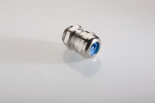 Kabelverschraubung blueglobe Ex-e-II, aus vernickeltem Messing, Dichteinsatz aus TPE inkl. heraustrennbarem Inlet zur Erweiterung des Dichtbereiches, großflächige und schonende Kabelabdichtung, O-Ring aus HBNR, Schutzarten IP 66, IP 68 bis 15 bar, sehr gute mechanische und thermische Eigenschaften, hohe Korrosions-, Verschleiß- und Vibrationsbeständigkeit, hohe UV-Stabilität, Anschlussgewinde kurz M16x1,5