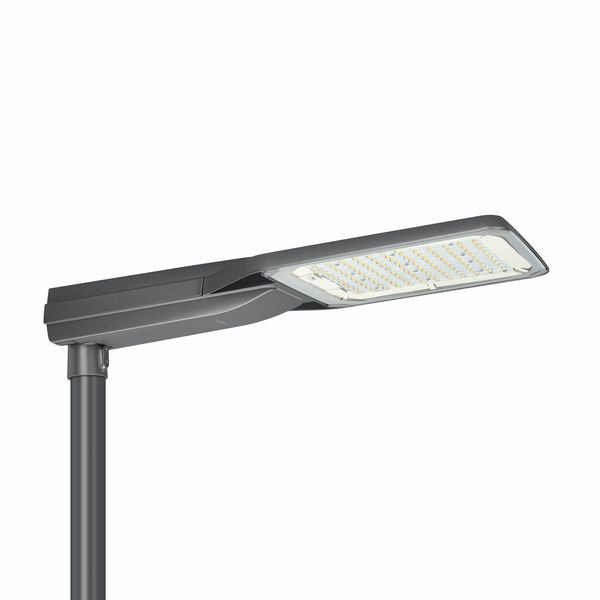 Road & street light, Aluminiumdruckguss, Dunkelgrau, An-/Aufsatz für Durchmesser 76mm, Netzteil mit DALI- und SystemReady-Schnittstelle und konstantem Lichtstrom (integriert), 28560 lm, 198 W, 144 lm/W, 4000 K, (0.38. 0.38) SDCM 5, CRI70, Extrem breitstrahlende Lichtverteilung 10, IP66 | Schutz gegen Eindringen von Staub, strahlwassergeschützt, IK09 | 10 J, SchutzklasseI, Überspannungsschutz bis 6 kV im Gegentaktmodus und bis 8 kV im Gleichtaktmodus, Schraubanschluss