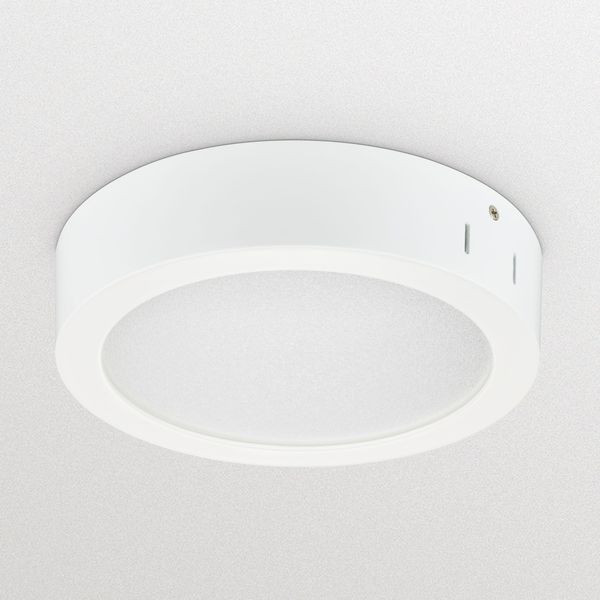 Surface-mounted, D205 mm, Aluminiumdruckguss, Weiß, Verkehrsweiß (RAL9016), Netzteil (Ein/Aus), 2100 lm, 21 W, 100 lm/W, 4000 K, (0.38212,0.38031) SDCM3, CRI80, Abstrahlungswinkel (90°), Opal, Polystyrol, IP20/44 | Fernhalten von Fingern; Drahtschutz, spritzwassergeschützt, IK02 | 0,2 J Standard, SchutzklasseII, 2-poliger Anschlussblock