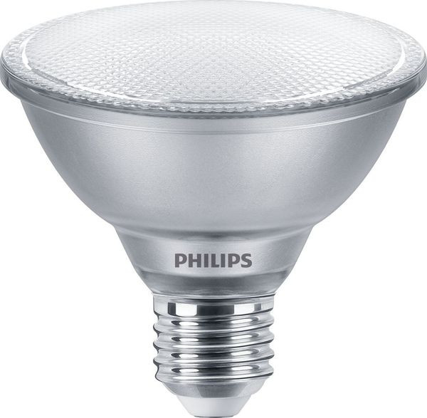 LED Reflektorlampe Philips MASTER VALUE LEDspot PAR30S, LED Alternative für Hochvolt-Halogenlampen 75W , 740lm, Farbtemperatur 2700K, Leistung 9.5W, Farbwiedergabeindex CRI90, mittlere Nutzlebensdauer 25000h, Energieeffizienzklasse F, Sockel E27, 25° Ausstrahlwinkel, , dimmbar, bitte Kompatibilitätsliste prüfen, photobiologische Sicherheit nach EN 62471 RG1, SDCM<6, Schutzart IP20