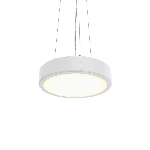 D390 mm; H85 mm, Polykarbonat, Weiß, Pendelleuchten, DALI-Dimmen Interact System Ready, 1817 lm, 15.4 W, 118 lm/W, 3000 K, (0.44, 0.40) SDCM 3, CRI90, UGR19, Abstrahlungswinkel (90°), Mikro-Sechseck-Optik, Polystyrol, ?IP20 | Fernhalten von Fingern, IK04 | 0,5 J Standard plus, SchutzklasseII, 2 Steckverbinder, 5-polig, Durchgangsverdrahtung, 1-phasig, TP(b) diffuser flammability class