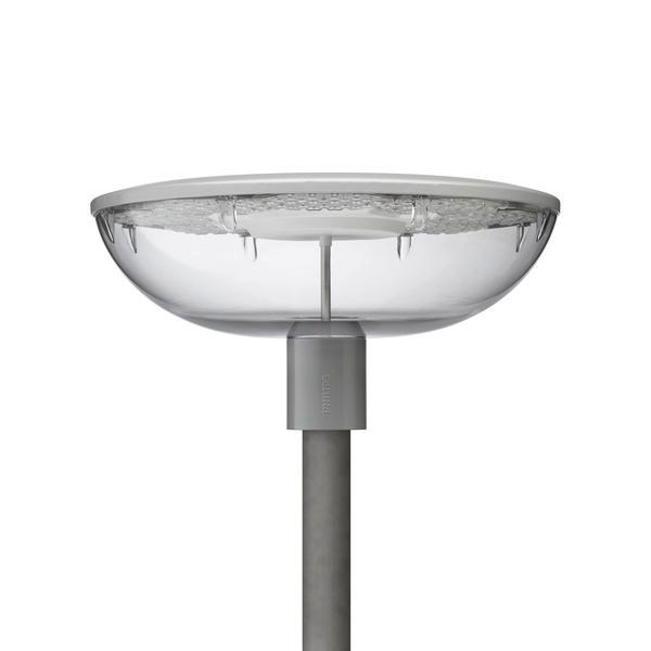 Urban road & street light, Aluminium, Silber, Mastspitze für Durchmesser 62mm, Netzteil mit DynaDimmer und konstantem Lichtstrom (integriert), Konstanter Lichtstrom und DynaDimmer mit festen Voreinstellungen, Version 2, 4424 lm, 46.5 W, 102 lm/W, 3000 K, (0.43, 0.40) SDCM 5, CRI80, Mittlere Lichtverteilung, IP66 | Schutz gegen Eindringen von Staub, strahlwassergeschützt, IK10 | 20 J vandalismusgeschützt, SchutzklasseII, Überspannungsschutz bis 6 kV im Gegentaktmodus und bis 6 kV im Gleichtaktmodus, Schraubanschlussblock, 5-polig
