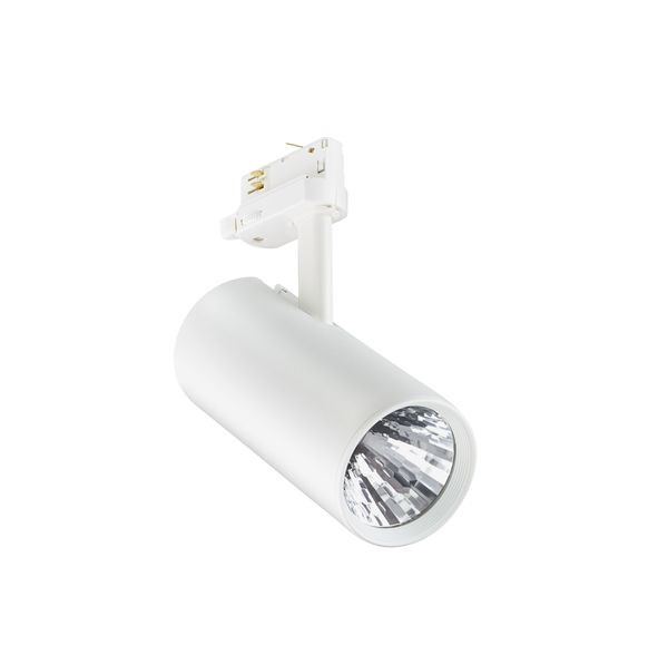 Track projector, Aluminium, Weiß, Netzteil (Ein/Aus), 4000 lm, 31.5 W, 129 lm/W, 3000 K, (0.434,0.403)3, Facettierter Reflektor mit Abstrahlungswinkeln von 60°, Klar, Polymethylmethacrylat, ?IP20 | Fernhalten von Fingern, IK02 | 0,2 J Standard, SchutzklasseII, 3-phasige Stromschiene