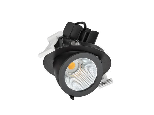 D125 mm, Aluminium, Schwarz, Signalschwarz (RAL9004), Netzgerät extern (Ein/Aus), 2800 lm, 23 W, 122 lm/W, 3000 K, (0.434,0.403)2, CRI90, Breitstrahlend (WB), PerfectAccent-Reflektoren, ?IP20 | Fernhalten von Fingern, IK02 | 0,2 J Standard, SchutzklasseII, 2 Steckverbinder, 2-polig