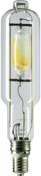 Hochdruck-Metalldampflampen, Röhrenform, horizontale Brennstellung. Mittlere Lebensdauer 20.000 Stunden