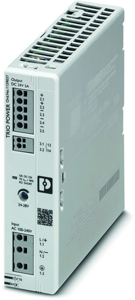 Primär getaktete Stromversorgung, TRIO POWER, Push-in-Anschluss, Tragschienenmontage, Eingang: 1-phasig, Ausgang: 24 V DC / 5 A, einstellbar von 24 V DC ... 28 V DC