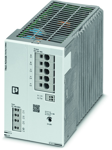 Primär getaktete Stromversorgung, TRIO POWER, Push-in-Anschluss, Tragschienenmontage, Eingang: 3-phasig, Ausgang: 24 V DC / 40 A, einstellbar von 24 V DC ... 28 V DC
