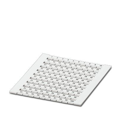 Zackband, Matte, weiß, beschriftet, längs bedruckt: fortlaufende Zahlen von 1 ... 100, Montageart: verrasten, für Klemmenbreite: 6,2 mm, Anzahl der Einzelschilder: 100, Textfeldhöhe: 5 mm, Textfeldbreite: 5,5 mm