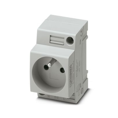 Steckdose, mit erweitertem Berührschutz / Shutter, Steckgesicht Typ E, Anschlussart: Schraubanschluss, Farbe: grau, Nennspannung: 250 V AC (50 Hz), Nennstrom: 16 A, zur Montage auf Tragschiene im Service-Interface oder Direktmontage, Normen/Bestimmungen: NF C61-314, IEC 60884-1, Länderkennzeichen: Frankreich