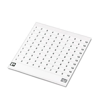 Kennzeichnungskarte, selbstklebend, längs bedruckt mit den fortlaufenden Zahlen: 81 ... 90, 10-teiliger Kennzeichnungsstreifen mit 10 gleichen Dekaden, weiß, für Klemmenbreite: 7,62 mm