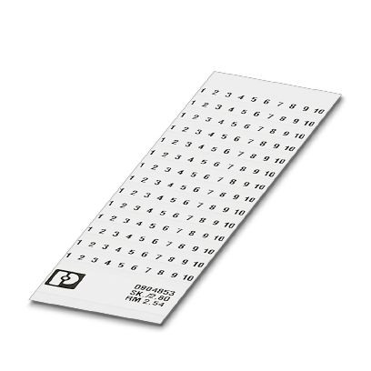 Kennzeichnungskarte, selbstklebend, längs bedruckt mit den fortlaufenden Zahlen: 21 ... 30, 10-teiliger Kennzeichnungsstreifen mit 14 gleichen Dekaden, weiß, für Klemmenbreite: 2,54 mm
