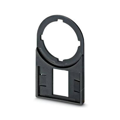 Schildchenträger, einsetzbar für alle Taster und Schalter mit 22 mm Durchmesser, schwarz, unbeschriftet, Montageart: schrauben, nieten, Durchmesser: 23 mm, Textfeldhöhe: 18 mm, Textfeldbreite: 27 mm