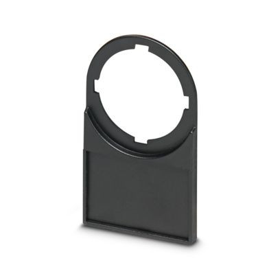 Schildchenträger, einsetzbar für alle Taster und Schalter mit 22 mm Durchmesser, schwarz, unbeschriftet, Montageart: schrauben, nieten, Durchmesser: 23 mm, Textfeldhöhe: 18 mm, Textfeldbreite: 27 mm