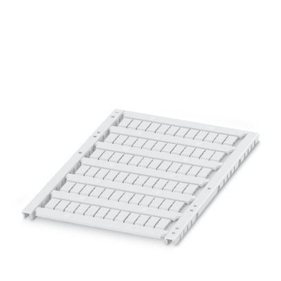 Marker für Klemmen, bestellbar: mattenweise, weiß, beschriftet nach Kundenangaben, Montageart: verrasten in hoher Schildchennut, für Klemmenbreite: 5,2 mm, Anzahl der Einzelschilder: 72, Textfeldhöhe: 8,4 mm, Textfeldbreite: 4,2 mm