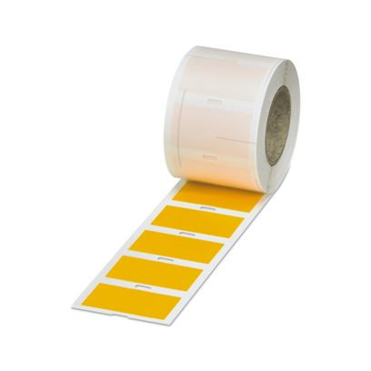 Warnschild, Rolle, gelb, unbeschriftet, beschriftbar mit: THERMOMARK E.300 (D)/600 (D), THERMOMARK ROLL 2.0, THERMOMARK ROLL, THERMOMARK ROLL X1, THERMOMARK ROLLMASTER 300/600, Montageart: kleben, Anzahl der Einzelschilder: 500, Textfeldhöhe: 26 mm, Textfeldbreite: 52 mm