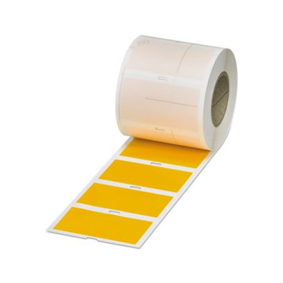 Warnschild, Rolle, gelb, unbeschriftet, beschriftbar mit: THERMOMARK E.300 (D)/600 (D), THERMOMARK ROLL 2.0, THERMOMARK ROLL, THERMOMARK ROLL X1, THERMOMARK ROLLMASTER 300/600, Montageart: kleben, Anzahl der Einzelschilder: 500, Textfeldhöhe: 37 mm, Textfeldbreite: 74 mm