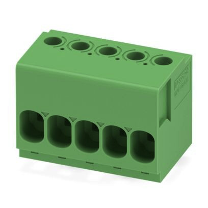Leiterplattenklemme, Nennstrom: 41 A, Bemessungsspannung (III/2): 1000 V, Nennquerschnitt: 4 mm², Anzahl der Potenziale: 5, Anzahl der Reihen: 1, Polzahl pro Reihe: 5, Artikelfamilie: TDPT 4/..-SC, Rastermaß: 6,35 mm, Anschlussart: Schraubanschluss mit Zughülse, Schraubenangriffsform: L Längsschlitz, Montage: Wellenlöten, Anschlussrichtung Leiter/Platine: 0 °, Farbe: grün, Pin-Layout: Zick-Zack-Pinning W, Pinlänge [P]: 3,5 mm, Anzahl der Lötpins pro Potenzial: 1, Verpackungsart: verpackt im Karton