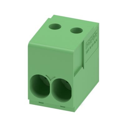 Leiterplattenklemme, Nennstrom: 76 A, Bemessungsspannung (III/2): 1000 V, Nennquerschnitt: 16 mm², Anzahl der Potenziale: 2, Anzahl der Reihen: 1, Polzahl pro Reihe: 2, Artikelfamilie: TDPT 16/..-SC, Rastermaß: 10,16 mm, Anschlussart: Schraubanschluss mit Zughülse, Schraubenangriffsform: L Längsschlitz, Montage: Wellenlöten, Anschlussrichtung Leiter/Platine: 0 °, Farbe: grün, Pin-Layout: Zick-Zack-Pinning W, Pinlänge [P]: 3,5 mm, Anzahl der Lötpins pro Potenzial: 2, Verpackungsart: verpackt im Karton